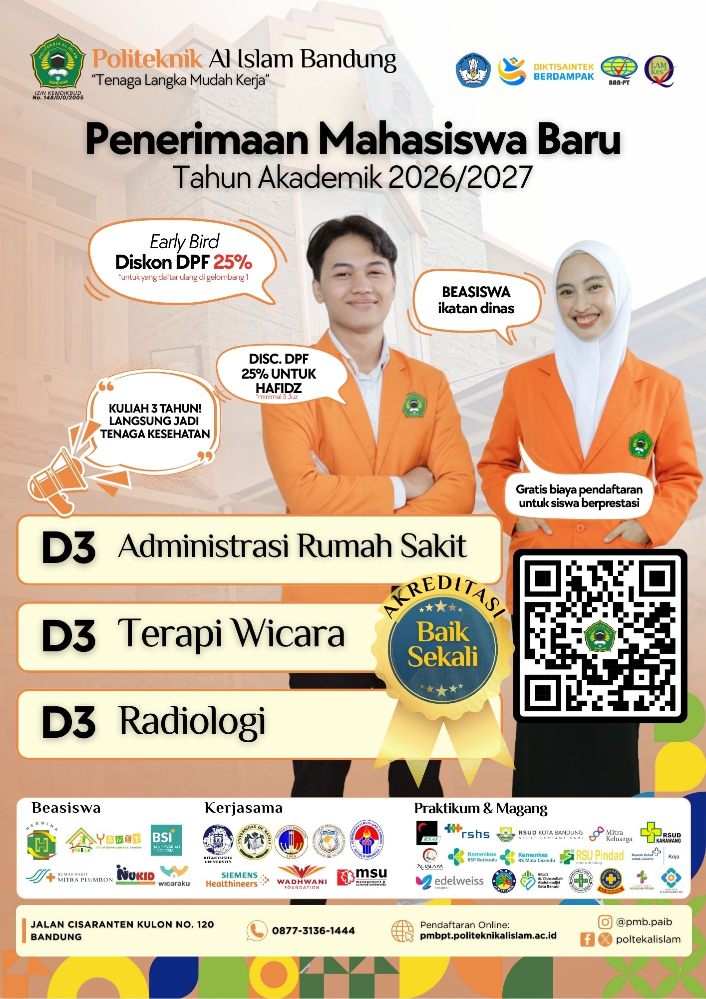 Di Politeknik Al Islam Bandung ini jurusannya langka tapi di dunia kerja sangat dibutuhkan, selain kesehatan, belajar juga mengenai kewirausahaan. Jadi temen-temen selain bekerja bisa membuka usaha di bidang kesehatan